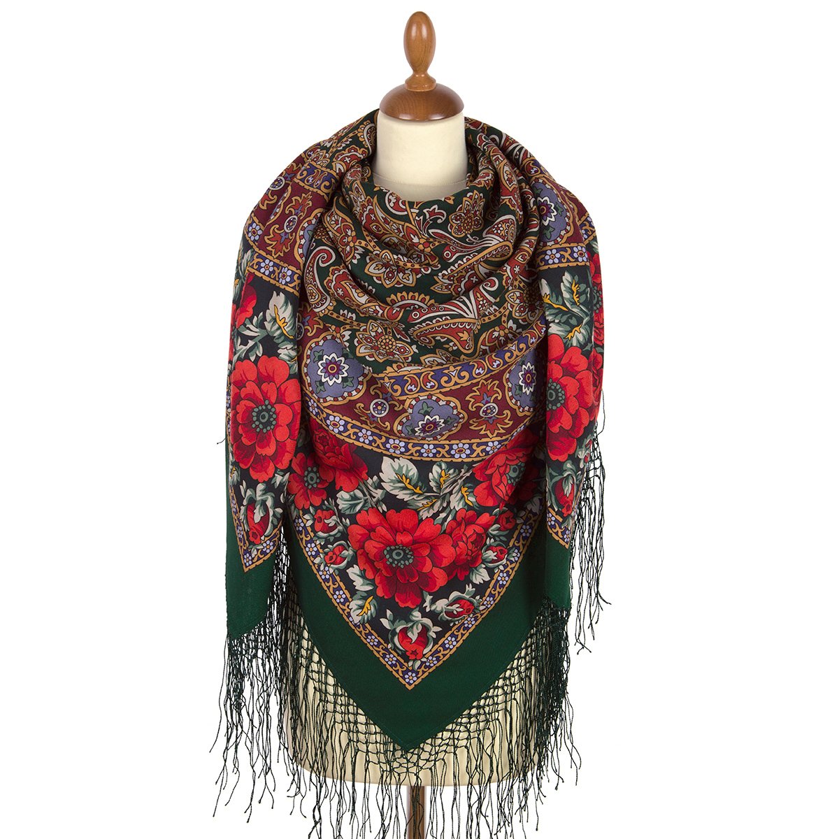 Многоцветный платок из уплотненной шерстяной ткани с шелковой бахромой, 148х148см, коллекционный