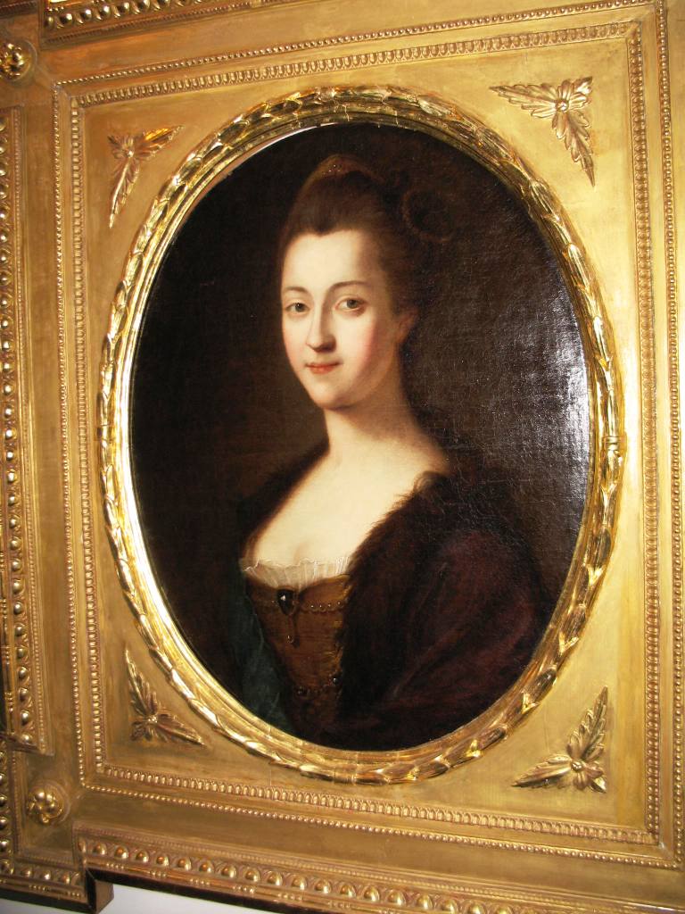 Среди экспонатов есть вот такой портрет. Молодую жену привёз в Ораниенбаум Пётр III. Это молодая Екатерина II. Ей здесь не нравилось, далеко от общества, от света, и после своего воцарения она здесь почти не бывала.
