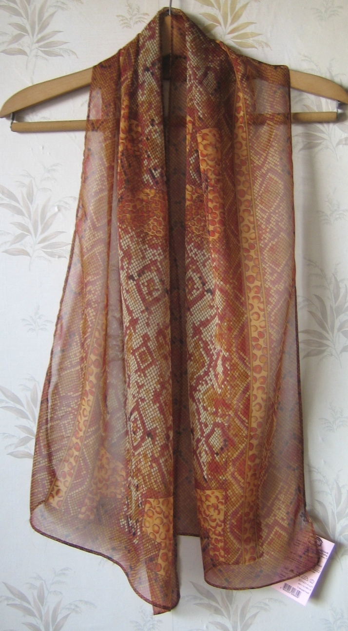 Оч. симпатичный шарфик. Но...хочется поярче, ближе к рисунку шкурки питона... :"