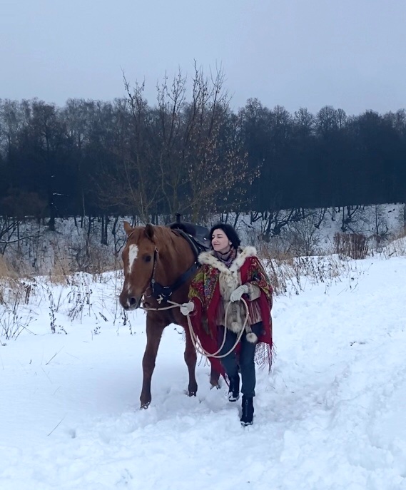 Nathalie, шубы,шали,лощади вам очень идут. Даже не знаю,что больше,видно,вам пойдет и загородный дом с конюшней) "Разводной" созвучен и сюжету и вашей яркой красоте.
