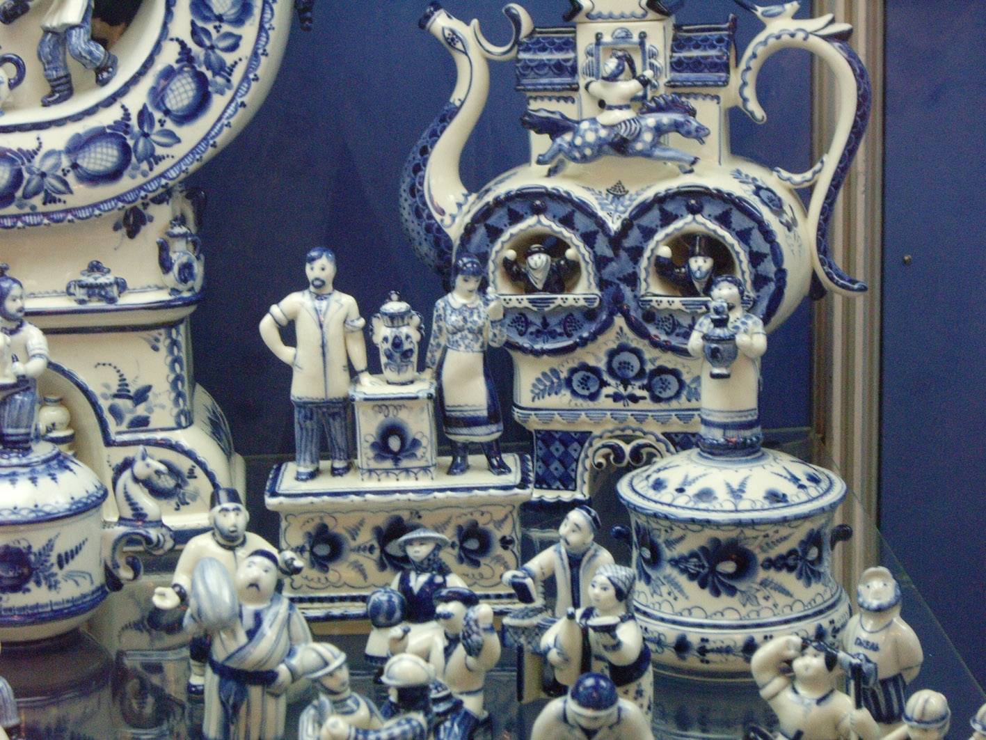В музее голова идет кругом от бело-синего изобилия. Под рассказ экскурсовода начинаешь присматриваться и различать стили и манеру письма мастеров. Очень интересно в сравнении. Кто густо покрывает поверхность цветами, кто чередует пояски-медальоны с интервалами. У всех художников своя манера письма и скульптурная пластика, техники очень индивидуальны.