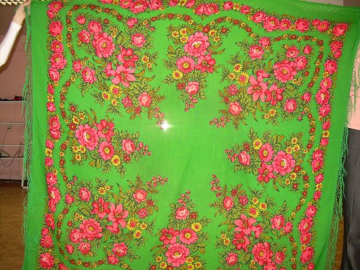 Приветствую платочное сообщество. Моя сослуживица родом из Украины попросила показать для опознания шерстяной платок, который носили ныне покойные её бабушка и мама. Не думаю, что он павлово-посадский..