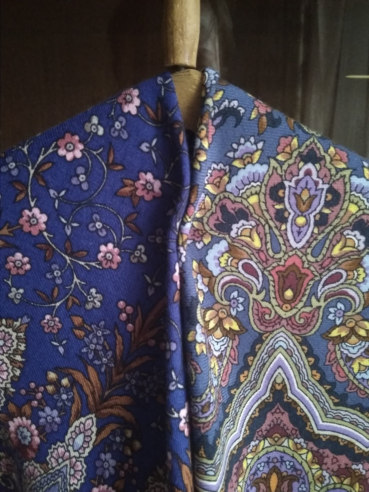 На фото получились как сквозь дымку, в реальности платки более яркие