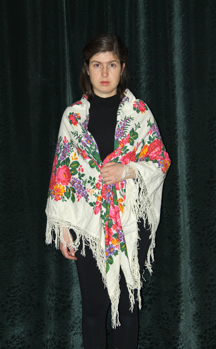Вашей дочке очень идет эта шаль: яркие цветы на тепло-белом фоне.
