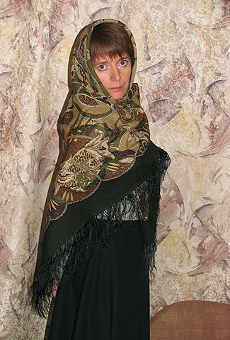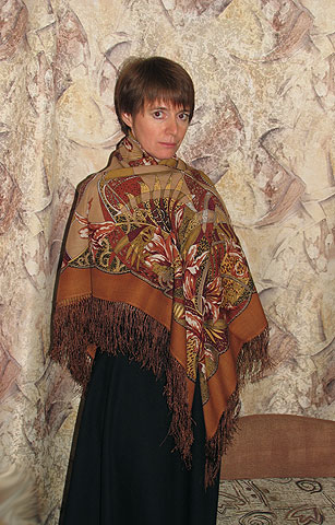 Дама сказала, что купила шаль давно - где-то в середине 80-х, а узор называется то-ли "Лебедушка", то ли "Лебединый"... Сама она платки павловские не собирает, но если увидит что-то по сердцу, то берет. Вот так и накопила небольшое собрание. С интернетом она на Вы, поэтому нашему форуму представиться - увы !- не сможет.