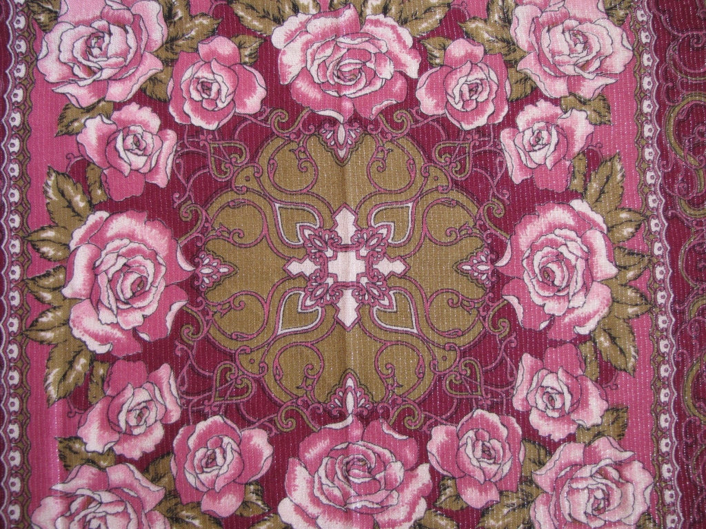 Прочла в этой теме, что в 80-х годах ПП мануфактура выпускала платки с люрексом. Вот, нашла в своих закромах. Может наш, посадский? Размер 84х84, наверно немного подсел. Красивое сочетание вишневого, бледно-розового и болотно-оливкового. Если б еще люрекса не было, было бы вообще замечательно.