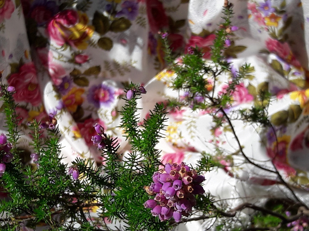Это эрика, вереск. У нас в лесах водится, но мелкий и бледный. Как чирень в деревенских полисадниках. Такая же бело-сиреневая.
