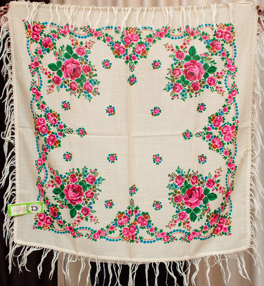 И ещё один не менее красивый платок украинского производства в павловопосадском стиле