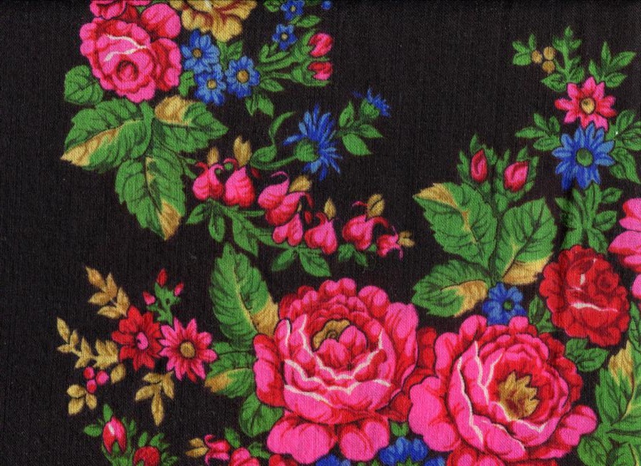 Как трудно бывает отойти от стереотипа. Долгое время между собою мы считали этот платок украинским, и вот теперь Ирина Петровна его опознала как шаль по рисунку Ольшевской! А посмотрите крок их детской художественной школы и сравните с узором шали Елены. Как же они похожи - по отдельным цветочным элементам, манере изображения крупных цветов! Вобщем, мой стереотип рухнул! А как аккуратно напечатана шаль - чудо!