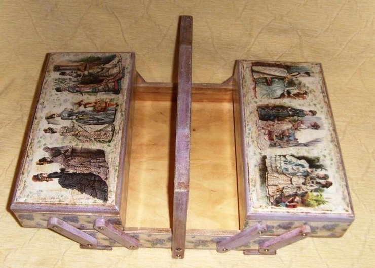 лучше всего начинать работы на ровной деревянной поверхности, но перед этим рекомендую посмотреть несколько МК от Натальи Фохтиной (найдете через любой поисковик), очень рекомендую учится на материалах попроще, клей ПВА+вода в пропорции 1*1, начинать с маленьких мотивов, я перед наклеиванием сначала картинку проглаживаю утюгом с паром, она растягивается и получается намного меньше складок(со временем их вообще не будет, когда руку набьёте)