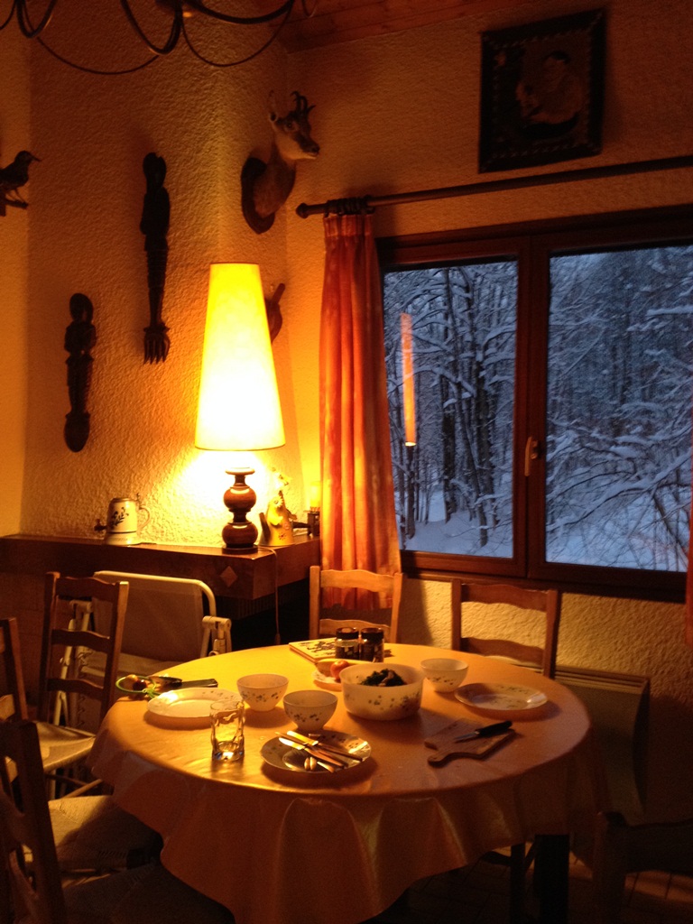 Наше пристанище – в одном из шале недалеко от подъемников, в наиболее высокой и снежной зоне. У дома следы разного зверья. Из всех окон вид на горы, нитки подъемников.