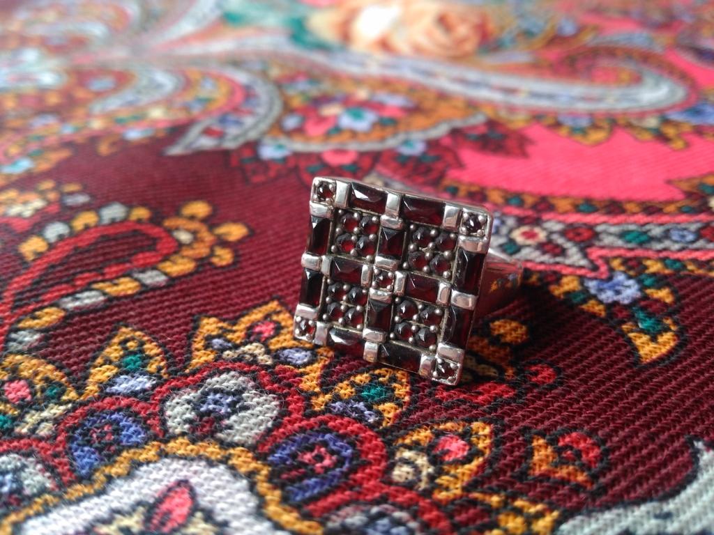 Таня Имбирь, колечко очень хорошенькое и дизайн не самый распространенный, берегите. В браслетах и втором колечке альмандины, что не есть плохо, хотя с пиропами не сравнится, и скорее всего не чешские, хотя произведено может быть и в Чехии.
