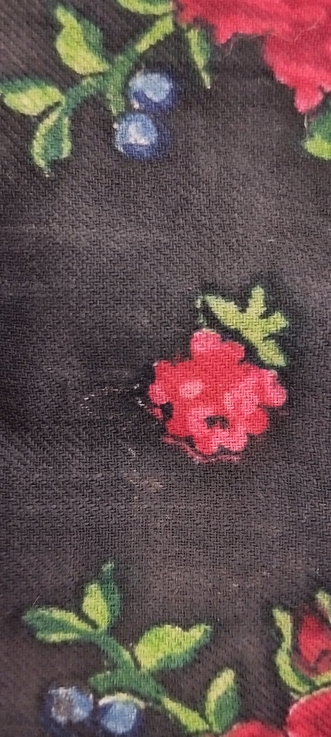 Здравствуйте! На днях купила платок размером 99см*101см. По двум сторонам кромка, по другим двум одинарная подгибка. Клетки плетеной каймы крупнее чем, например, на платках 1960х. Производит впечатление ручной набойки. Продавала женщина лет 50ти, она сказала, что платок достался ей от мамы, а маме от её мамы. На углах рисунок лёг по-разному, есть отличия. Интересно Ваше мнение, каких годов может быть этот платок и ручная ли это набойка. Спасибо.
