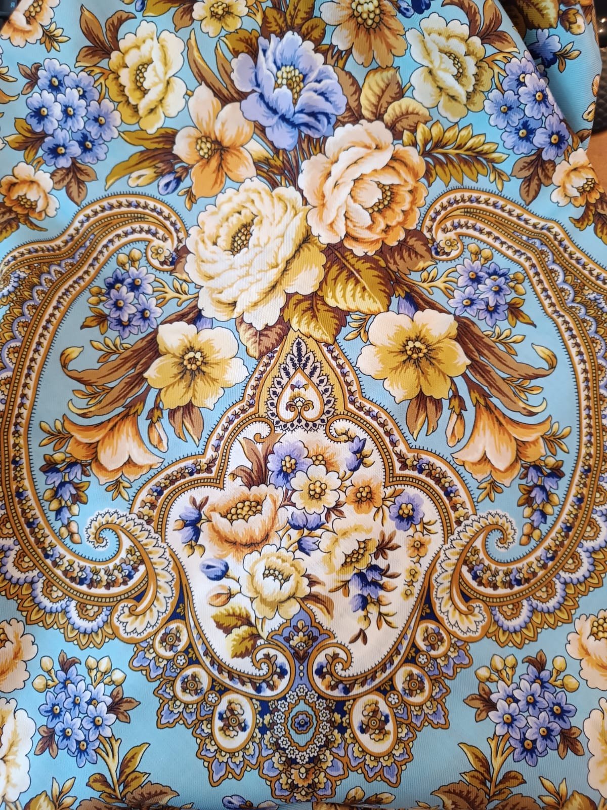 Вчера вместе с шалью купила шелковый платок "Летний вечер"-14 проекта Палитра. Потрясающей красоты платок. Сапфировый фон