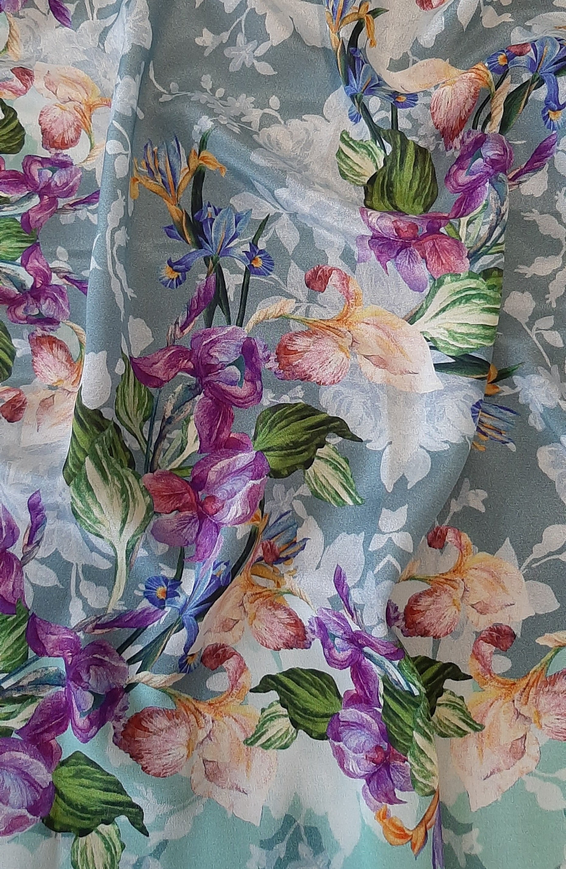 В результате случилась любовь с первого прикосновения. Соблазнило еще и то, что это был последний экземпляр платка в магазине. Подрубка идеальная, ни на одном моем шелковом платке пп мануфактуры такой качественной обработки края нет.