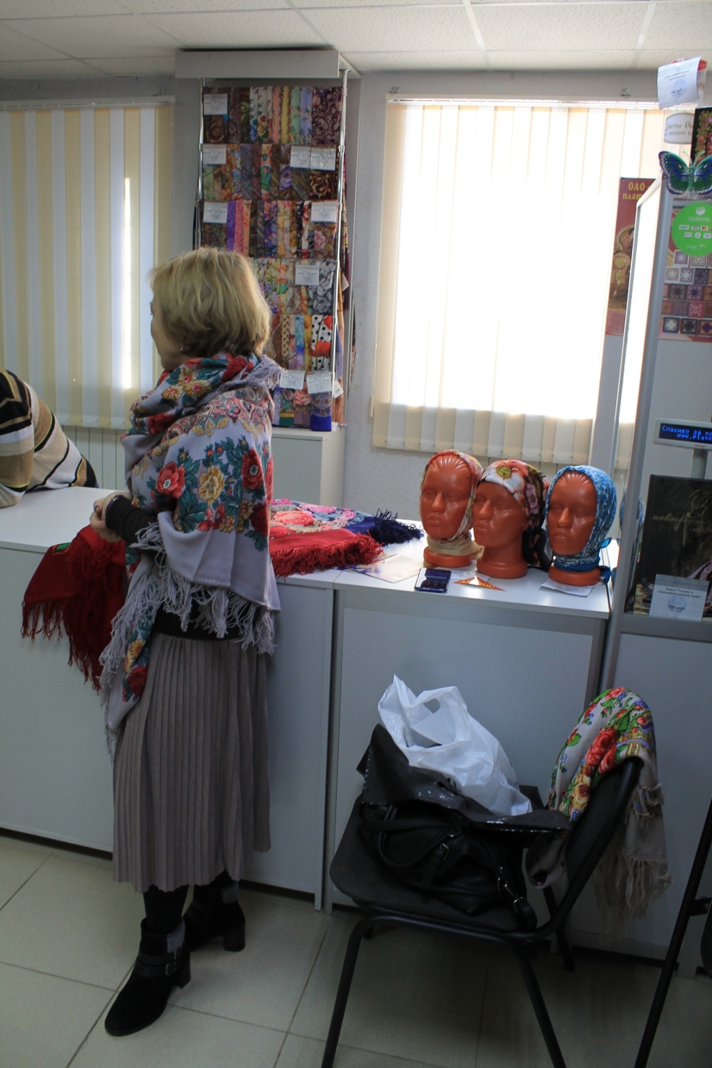 Оксана, наш продавец, успевала везде. Оксана, искренняя Вам благодарность за терпение, профессионализм, радушие и внимание! У Вас приятно покупать. Ни словом, ни мимикой, ни жестом не выказала усталости, скуки или недовольства нашими примерками. Мы , конечно, сознаем свой недуг и стараемся доставлять как можно меньше неудобств продавцам инормальным людям покупателям. Так что пока мы крутились перед зеркалом, довольно много покупателей ушло с новыми платками .
