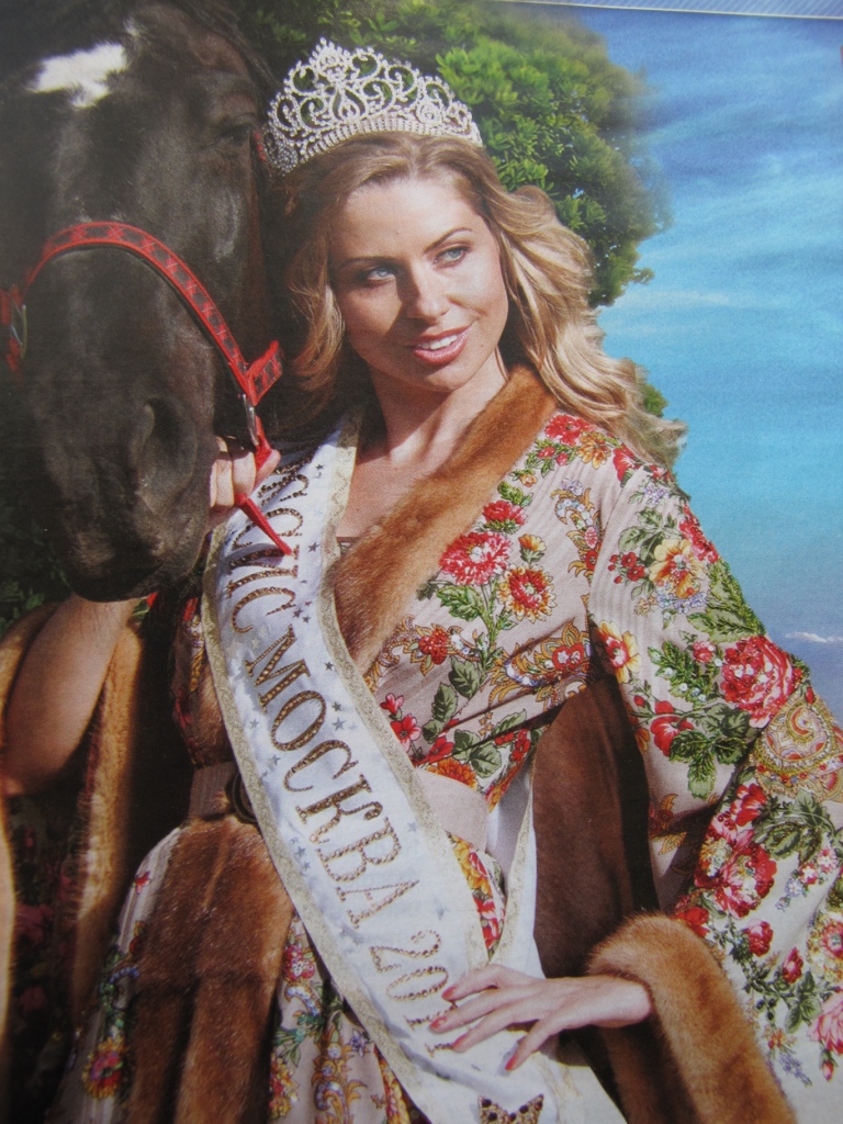 Миссис Москва-2011 рекламирует шампунь в наряде из платка Изысканный. Фото из журнала Бурда.