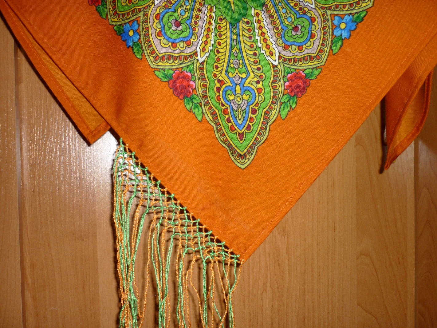 я тут подумала, что легче заново свяжу бахрому подлиннее, чем решусь ее подрезать... По мне, чем она длиннее, тем лучше... Ну, я уже рассказывала про мой татарский вкус