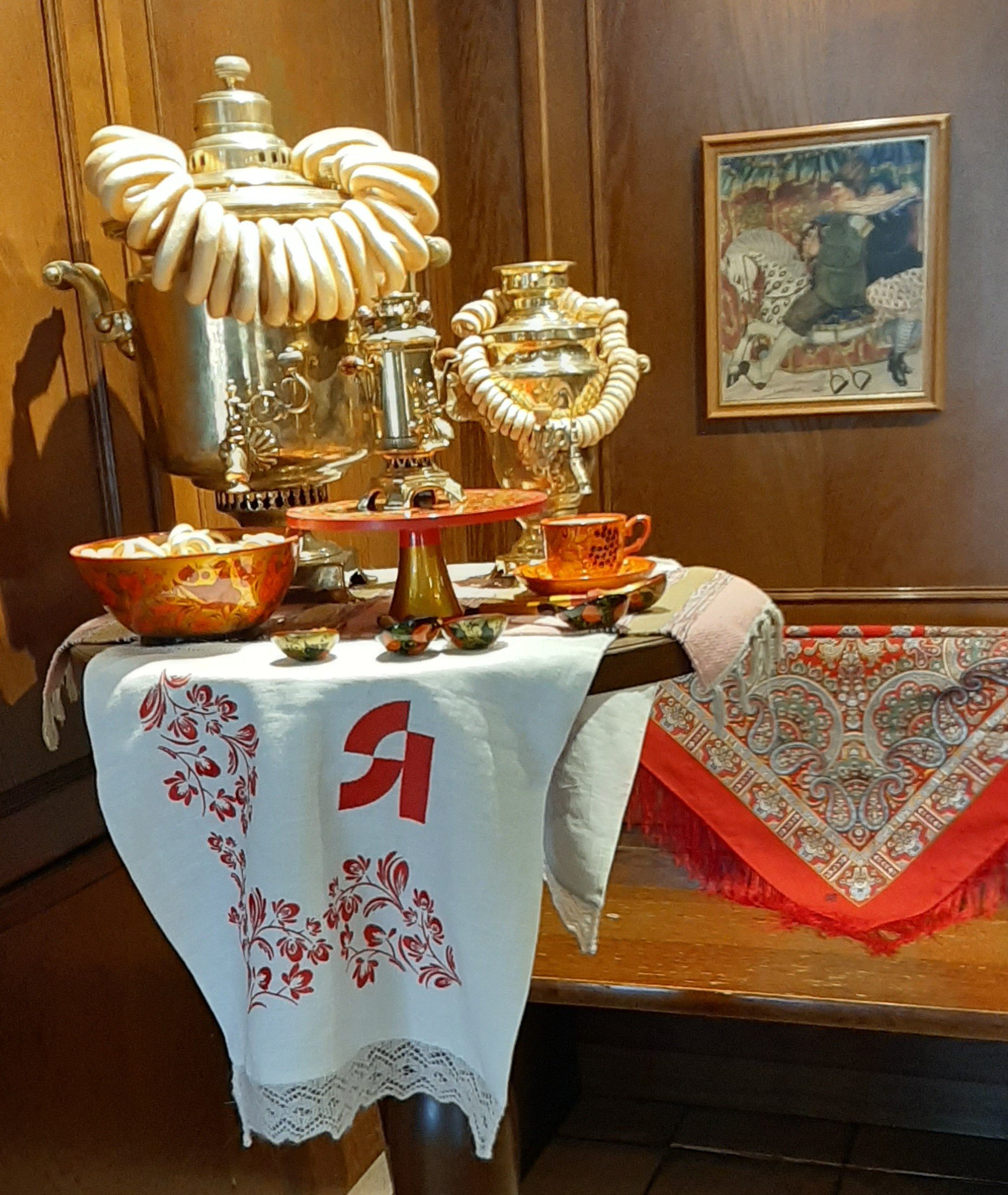 Это в "Самоварне" в Ярмарочном доме. Вчера были в Пакгаузах на выставке "Русская ярмарка. Торг. Гулянье. Балаган" А Городец да, любимый, жаль этим летом съезить не получится.