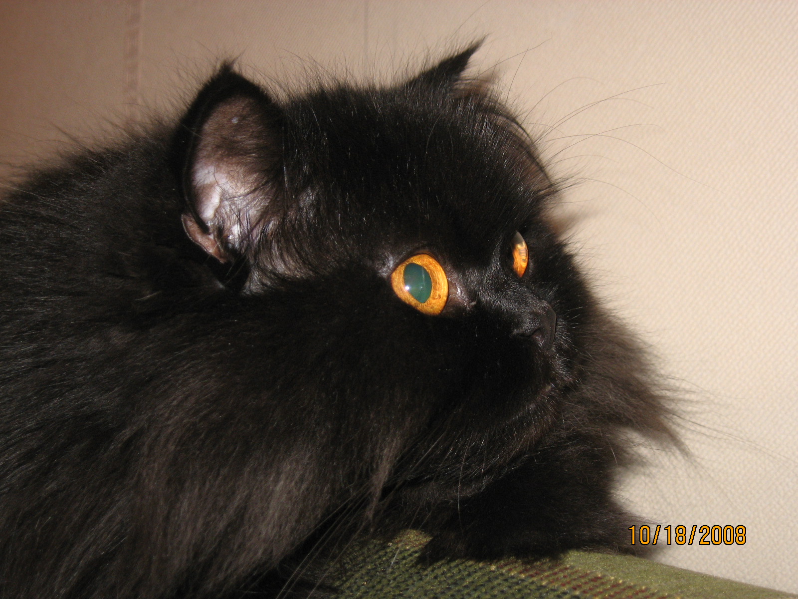 Отвечаю сразу всем! Кот чудо чудесное. ласковый, игручий, мягкий. Ему уже два года. Необыкновенный шалун. Слушается ли он меня? :lol: Он свято уверен, что это мы у него живём, а не он у нас! Мы его холим и лелеем. Мама у него песидская принцесса, а папа неизвестный гусар. От мамы у него дивный профиль, а от папы страсть копаться в помойке. Иногда думаю, что надо было назвать его не Герленом, а Климом Чугункиным! А фон Шумахер он за повышенную шустролапость!
