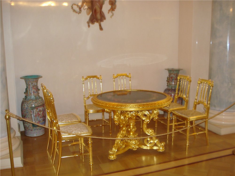 Росписи, резьба, массивная отделка золотом, венецианские зеркала, дорогие шелка, ценные порода дерева, изящная мебель, инкрустация из драгоценных камней и перламутра, картины и другие произведения искусства, это не может не впечатлить – это надо видеть!