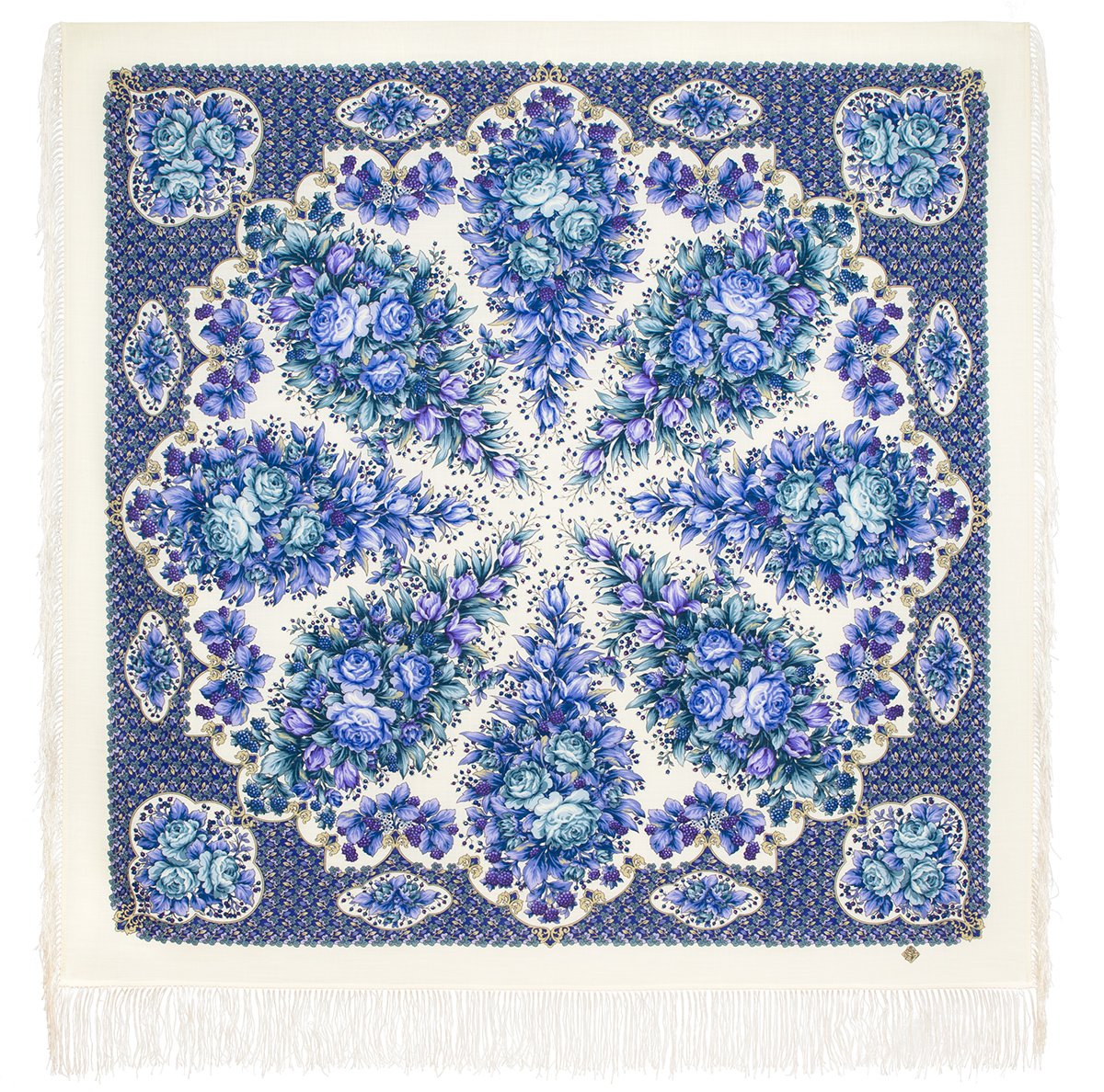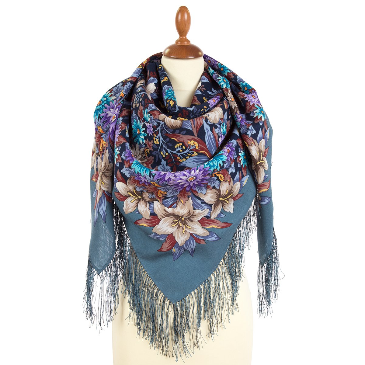 Платок шерстяной с шелковой бахромой, 125х125 см