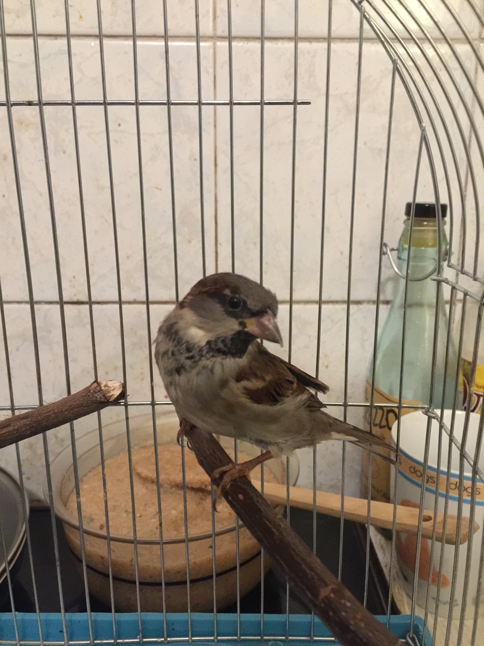 у Джека откушено полкрыла-подобрала осенью на улице,