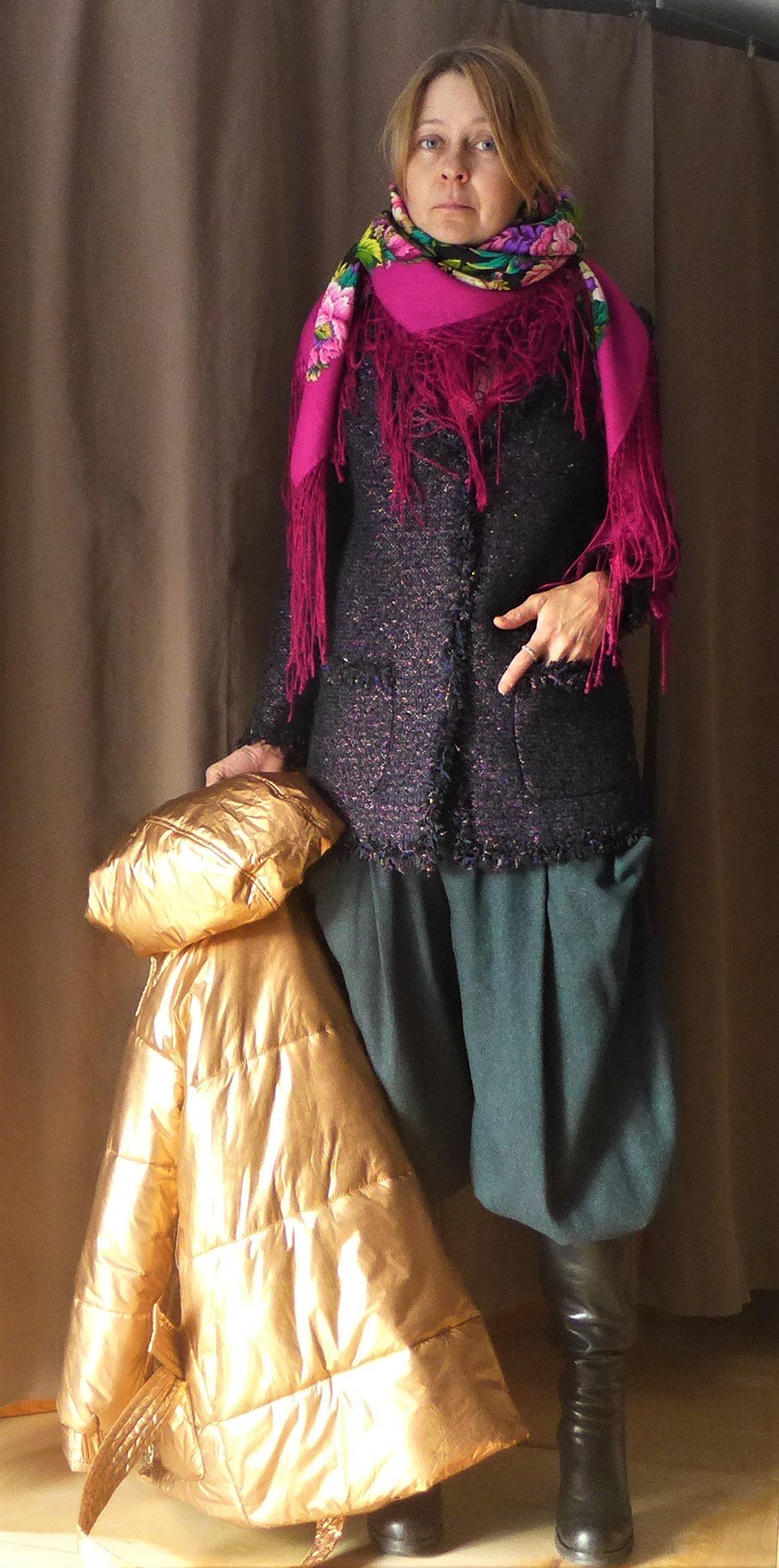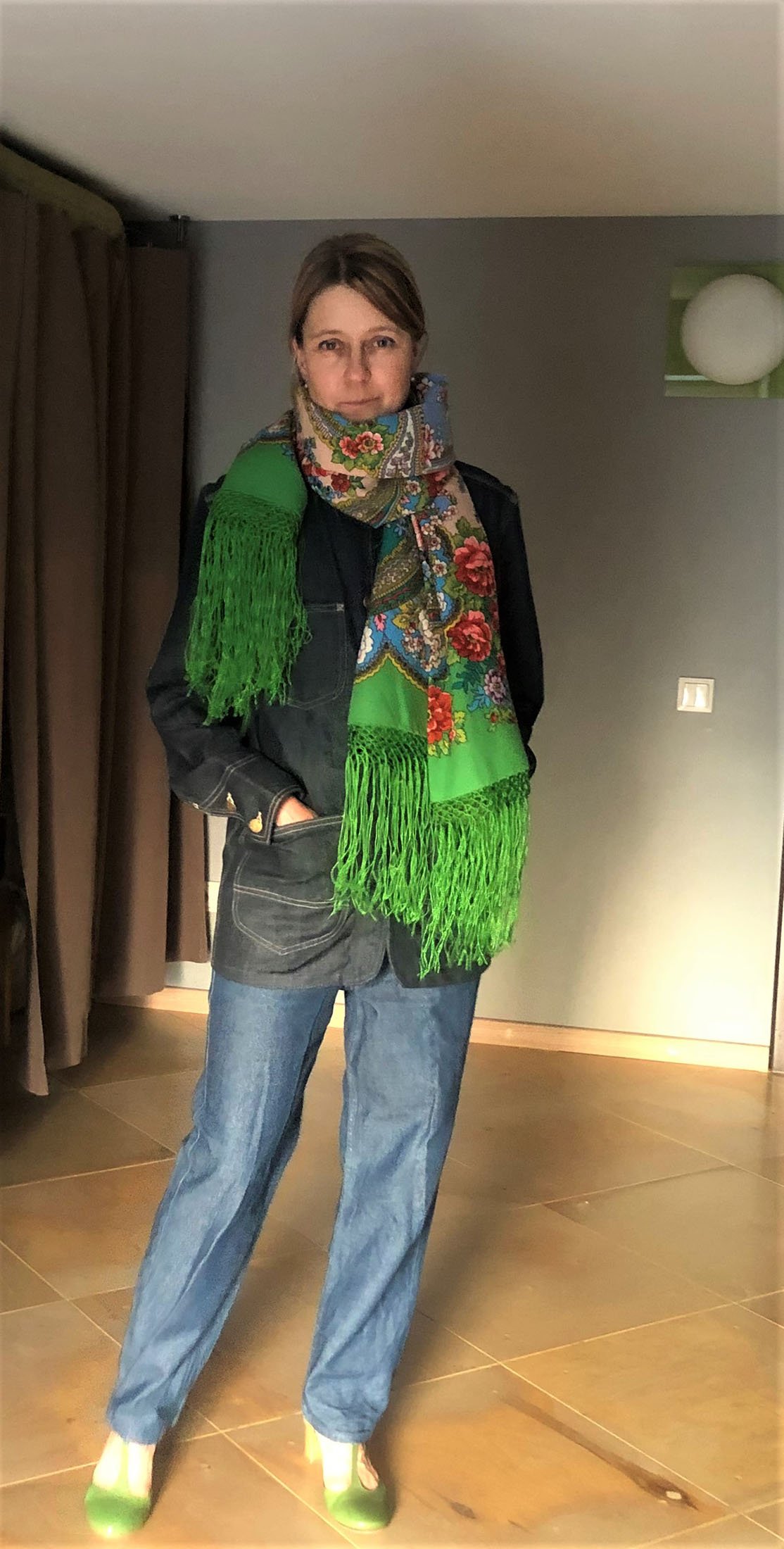 тут интрига в том, что джинсовый жакет куплен в мужском отделе ЭйчМ, так что топорщится на спине весьма выразительно
