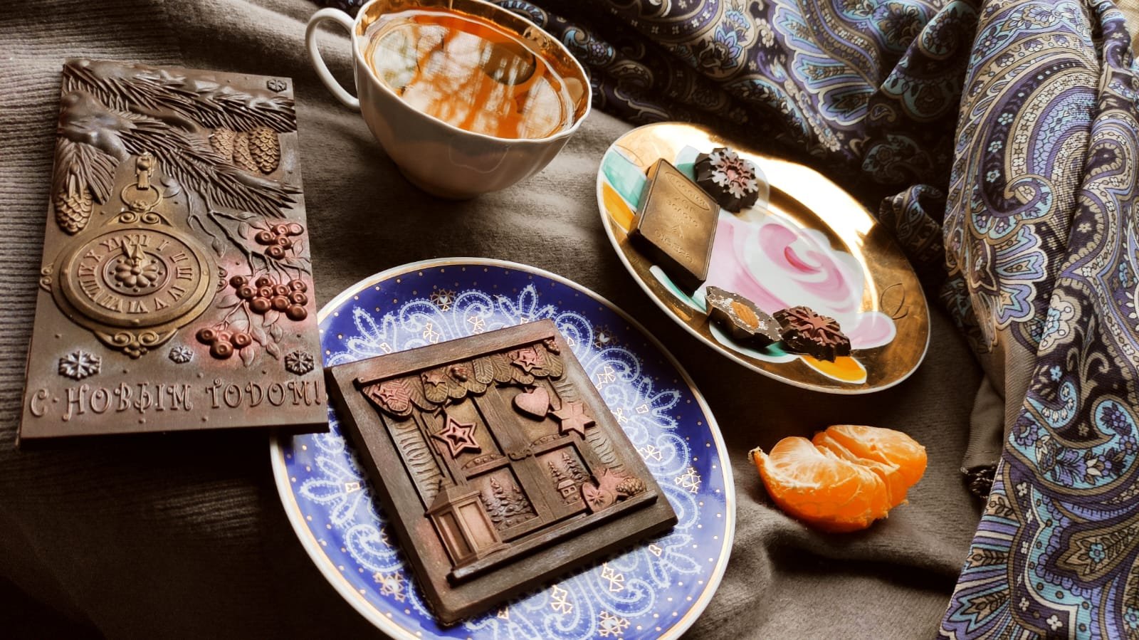 IMG-20240101-WA0084.jpg - Из килограммовой развесовки чистого горького (+ванилин) формировала в плиточки с новогодней тематикой, в растопленный добавляя понемножку корицу+гвоздику+мускатный орех+имбирь+кардамон+черный перец + подсластитель эритрит и стевию + совсем мало соли. IMG-20240101-WA0085.jp...