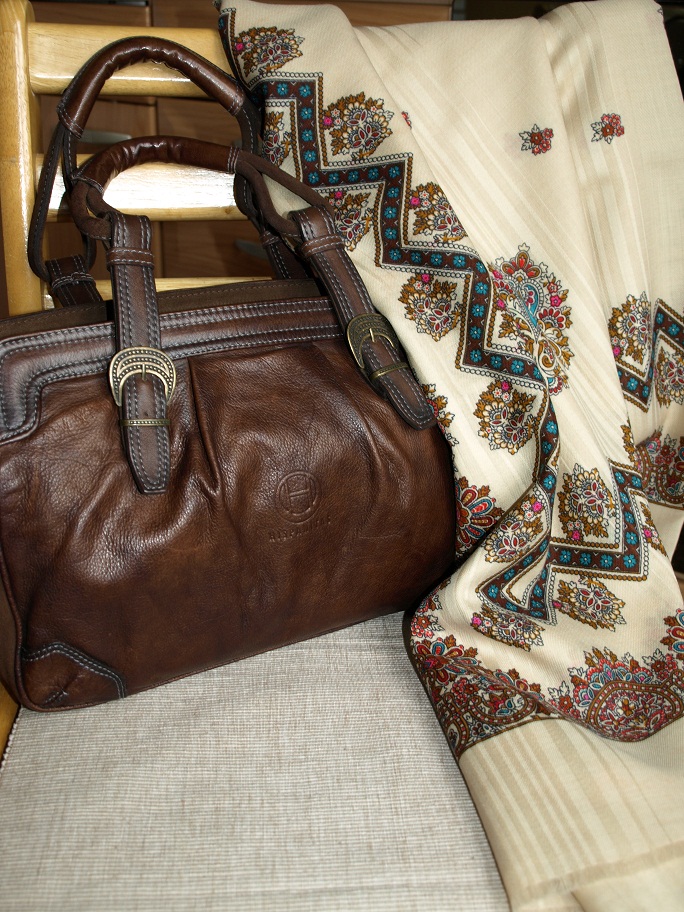 А здесь отлично совпали цвета сумки и каймы платка