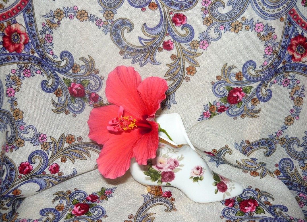 Добавлю тоже свою фотку в эту тему.Нашла похожие розы на фарфоровом башмачке и платочке "Милый друг"