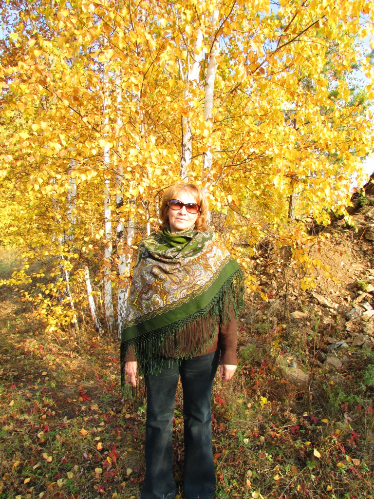 И конечно золотая осень... Мамуля в маск-палатке, ой! то есть в маск-платке