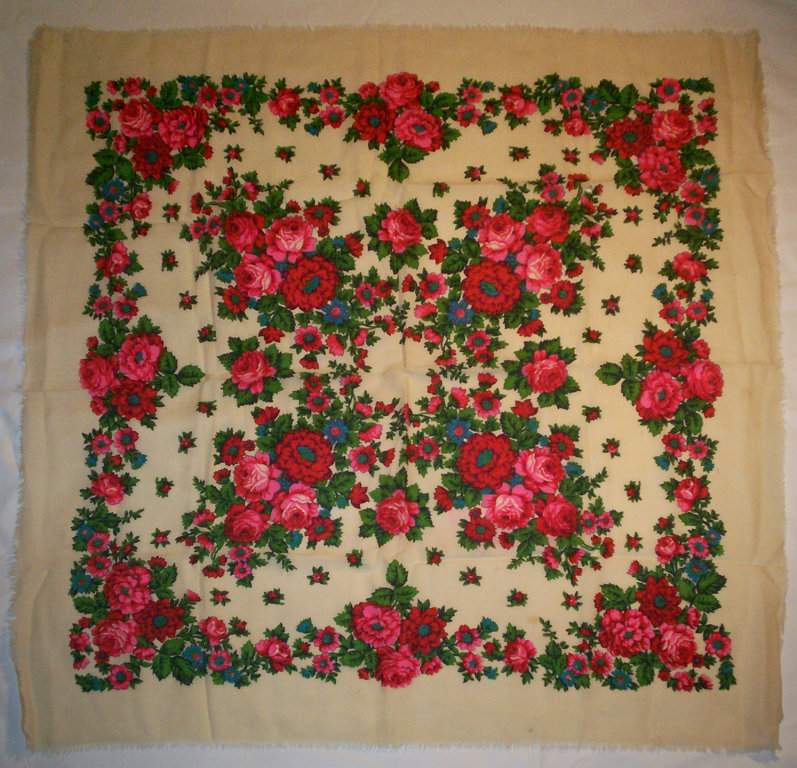 Аааа... не посмотрела сразу куда надо. Хлопок. И непонятно - то ли шаль, то ли скатерть. Два в одном.
