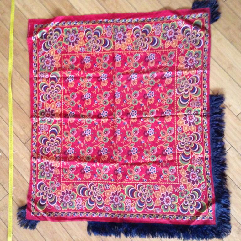 Очень рационально поступили, когда делали бахрому на этом платочке. Все равно , если сложить его по диагонали, бахромы с внутренней стороны видно не будет. 7500 руб. однако. Барановский. Старинный..
