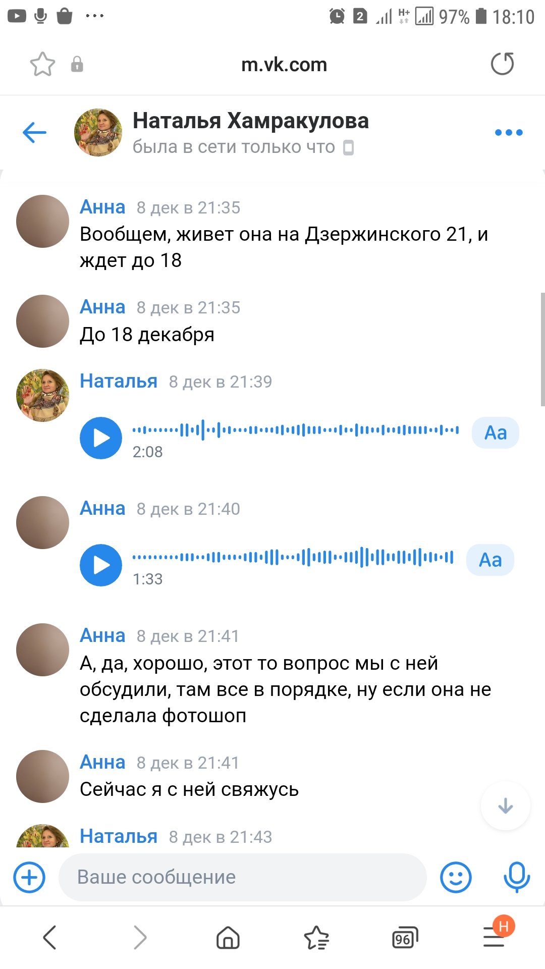 5. Пишу Наталье ( см скрин, стрелкой указала) что платок у меня увели и похоже Кристина