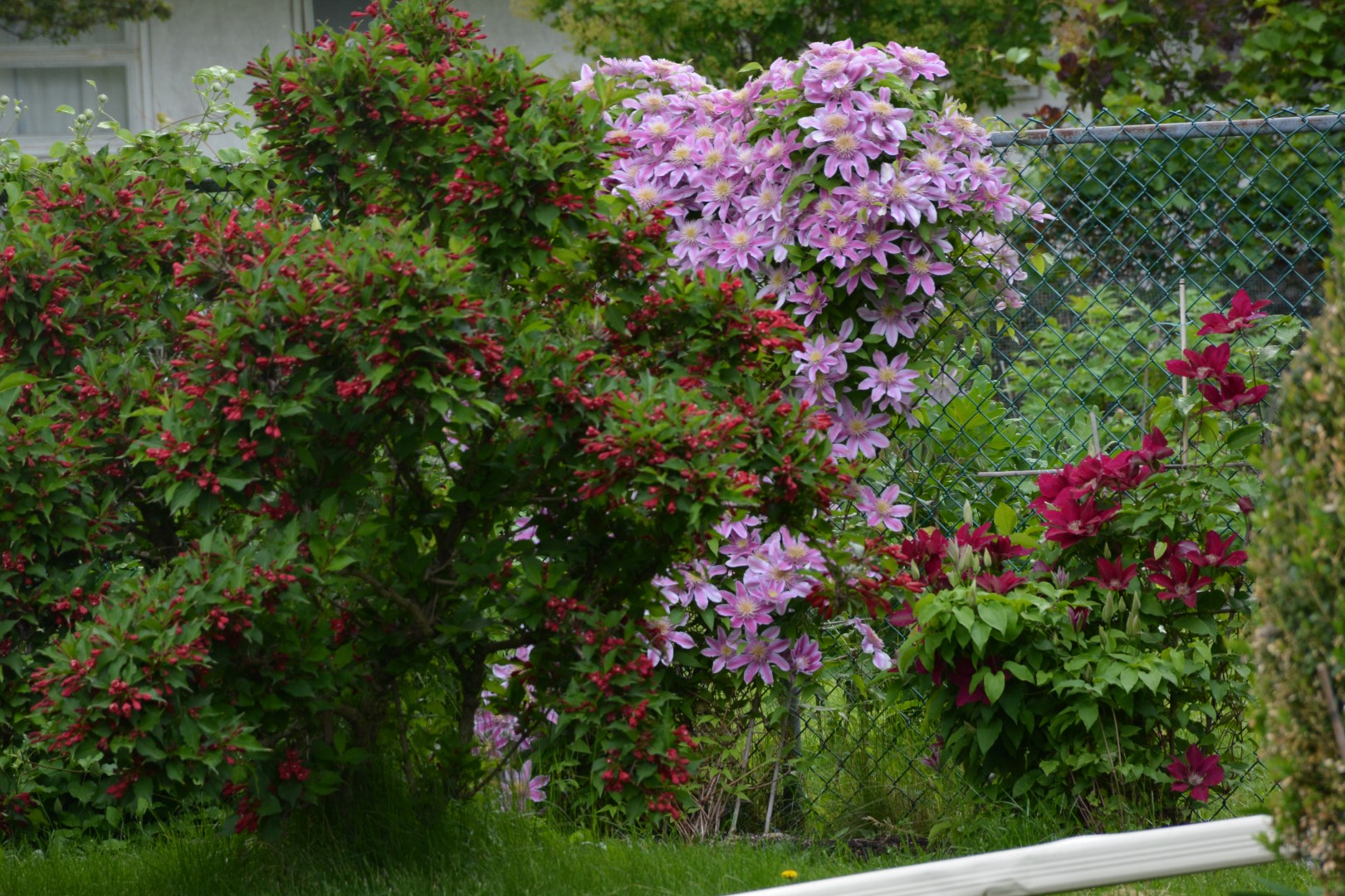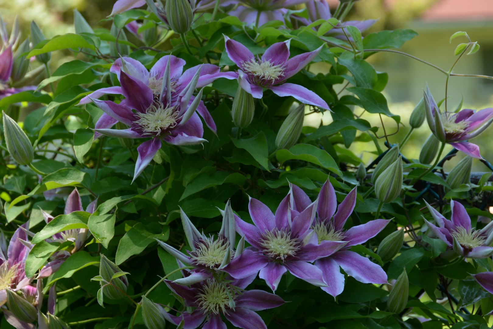 Клематисы растут хорошо, большие, стены закрывают.