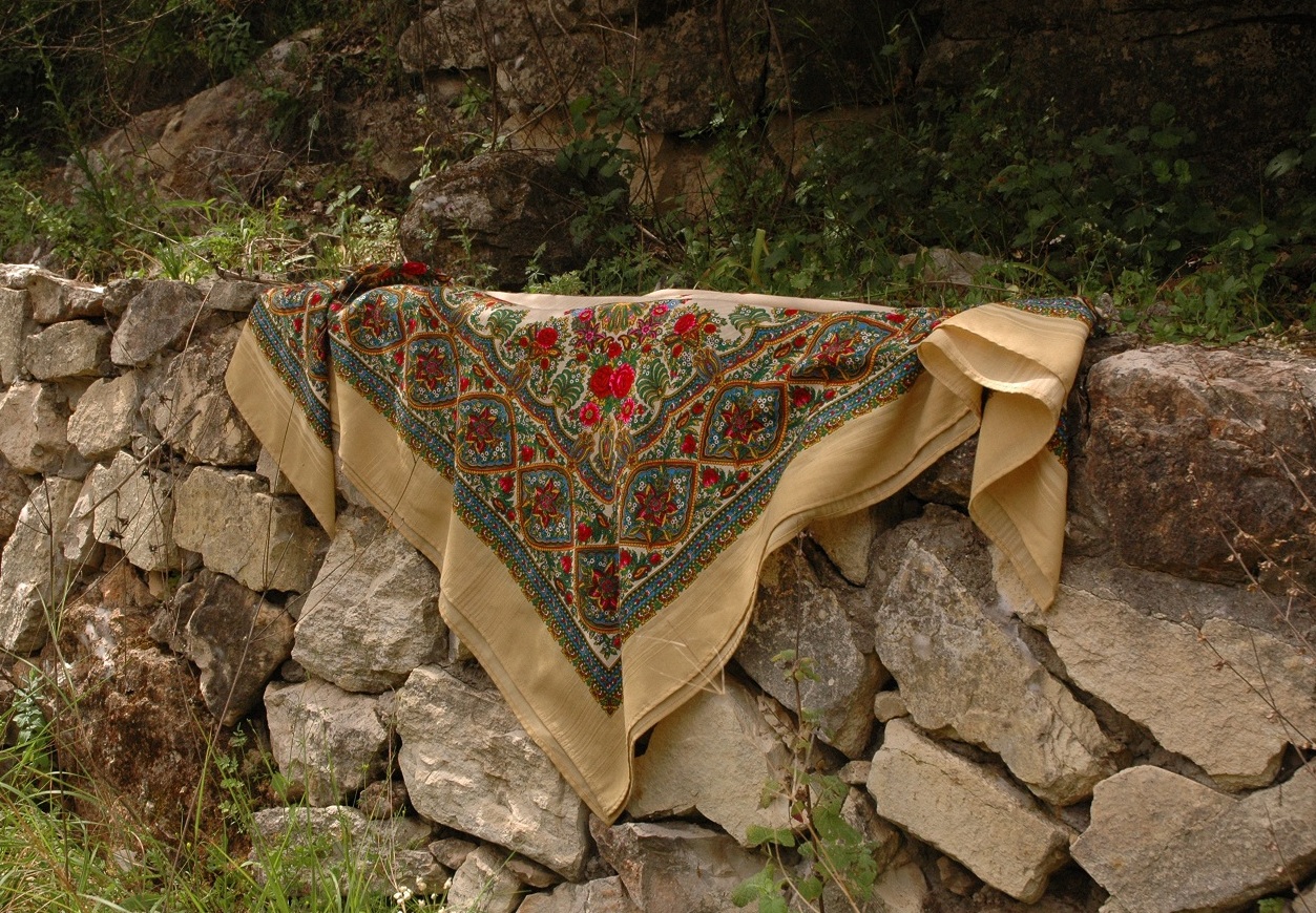 Платок очень фотогеничен и породист! "Прочувствовала" мелкие белые цветочки, разбросанные по всему орнаменту/склону ::P (Кликните, чтобы почитать, что спрятано под катом)...