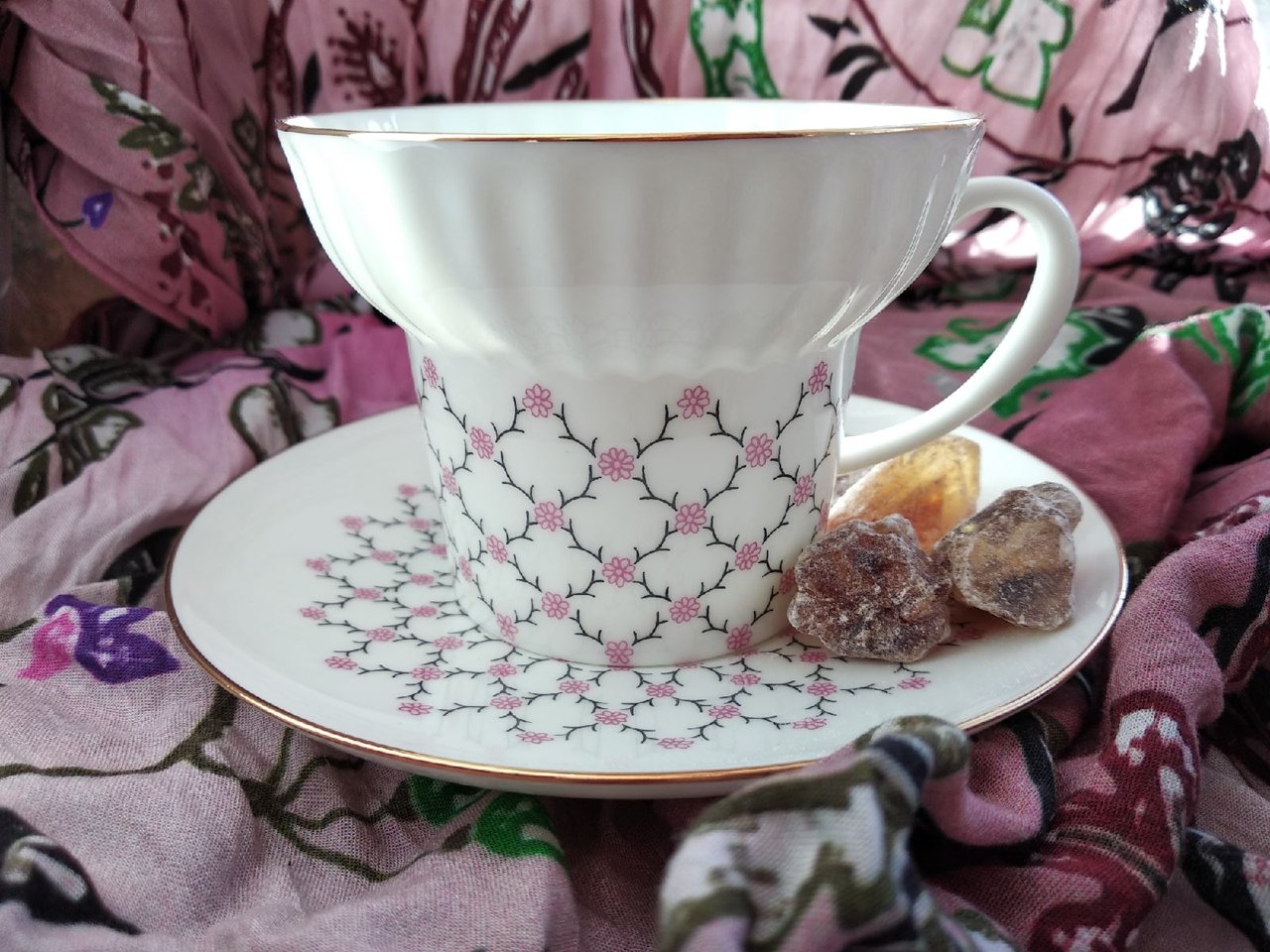 Продавцу я сразу сказала, что я знакомлюсь с посудой впервые, и она терпеливо мне все показывала. В итоге купила пару, потому что в трио на тарелке рисунок весь в центре, и его банально не будет видно, положив кусочек тортика ;)