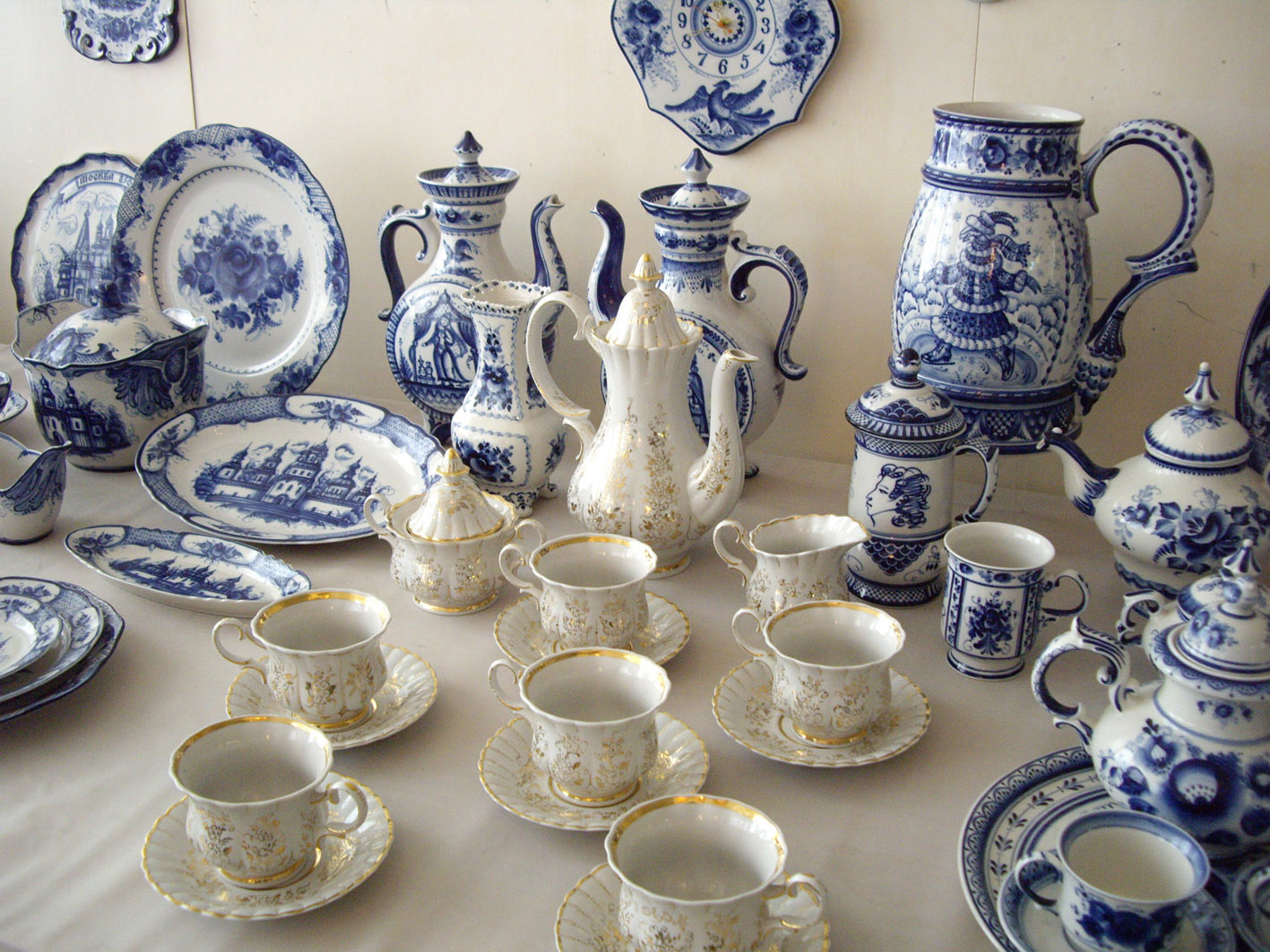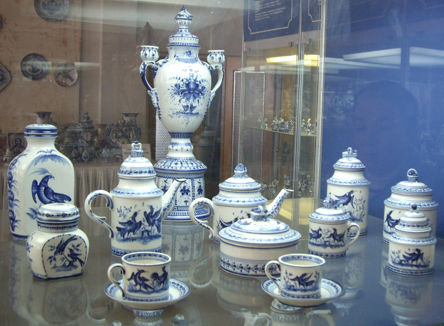 В музее голова идет кругом от бело-синего изобилия. Под рассказ экскурсовода начинаешь присматриваться и различать стили и манеру письма мастеров. Очень интересно в сравнении. Кто густо покрывает поверхность цветами, кто чередует пояски-медальоны с интервалами. У всех художников своя манера письма и скульптурная пластика, техники очень индивидуальны.