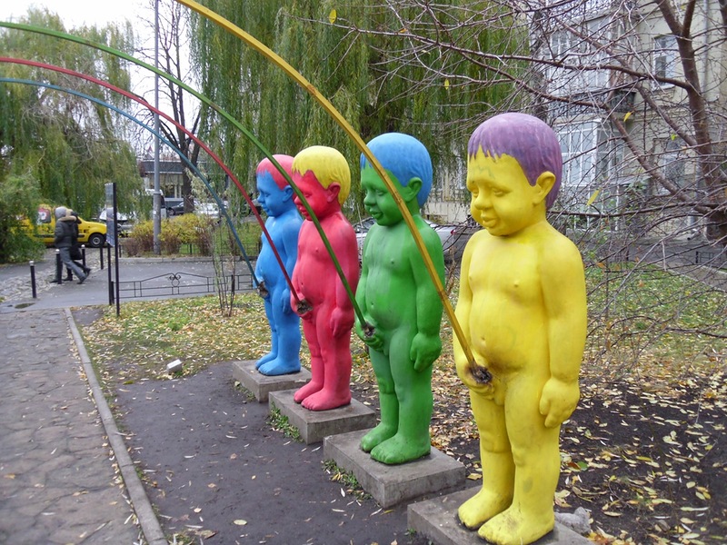 А скамейка с пледом стоит в таком теперь неоднозначном месте. Пейзажная аллея. Для меня это место в Киеве всегда было самым любимым. Аллея в центре города, куда не попадают машины и шум. Природа, чистый воздух. Я всегда завидовала людям живущим в близлежащих домах. Я и сейчас его люблю, конечно же. Но с некоторых пор его безвозвратно испортили. Сюда решили натыкать много скульптурных композиций, совершенно не вписывающихся ни во что! Для отвода глаз поставлено пару нормальных скамеек и экспонатов. А остальное - вещи вызывающие отвращение и негативные эмоции. Всё это называют современным искусством. Типа те, кому не нравится - непродвинутые лохи. Ну а всем остальным под пиво очень даже катит. Ходят они среди всего этого "искусства" и достаточно стабильно гадят. Вот так.