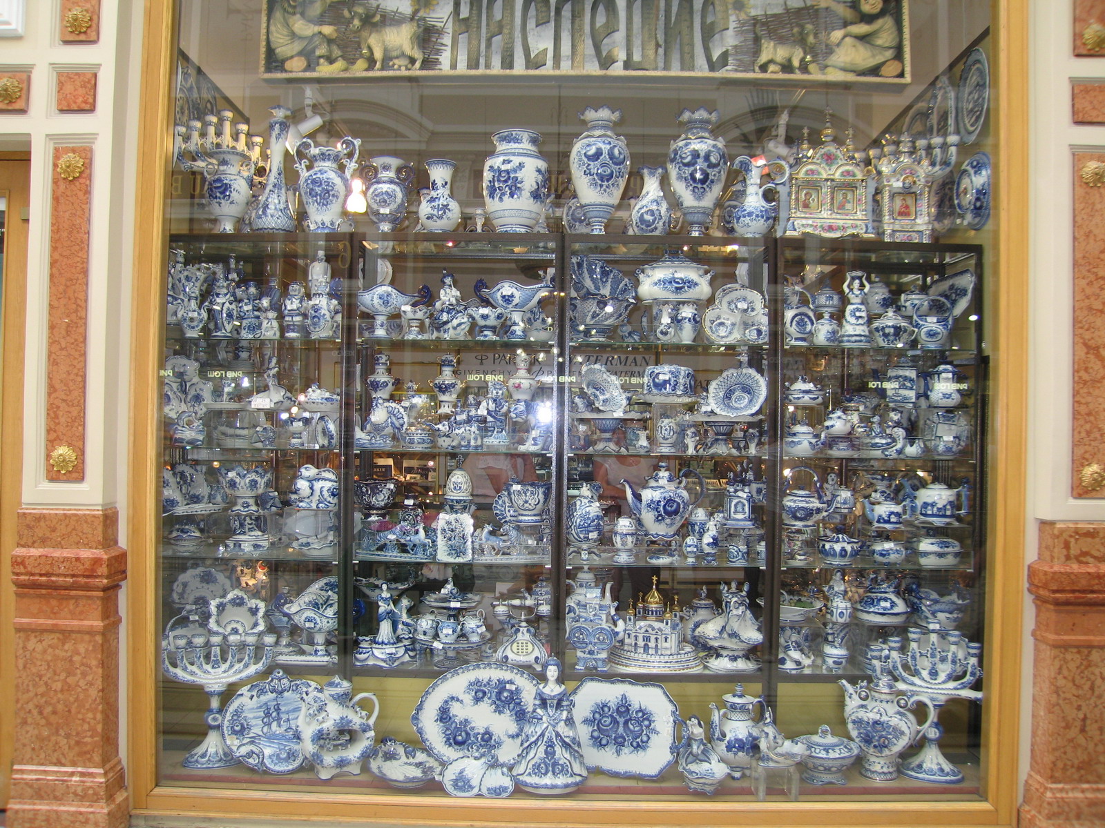 Вот ещё немного гжели. Это в Питере, в Пассаже, витрина на первом этаже. Была там на днях.