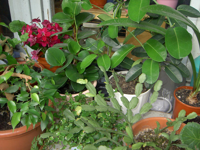 Заметно, что лепестки немножко пообтёрлись, пока везла в пакете.Давно хотела его приобрести, да всё руки не доходили. А тут вот увидела, и не удержалась. Дома жильё маленькое, для цветов условий практически нет, зато в школьном кабинете душу отвожу. Да и общение с ребятами привел к уверенности, что цветы в кабинете быть должны и разные. Это сказали и девочки и мальчики. Только вот приходится летом - домой на лоджию забирать, осенью обратно в школу относить. Вот так они у меня проводят лето на балконе: