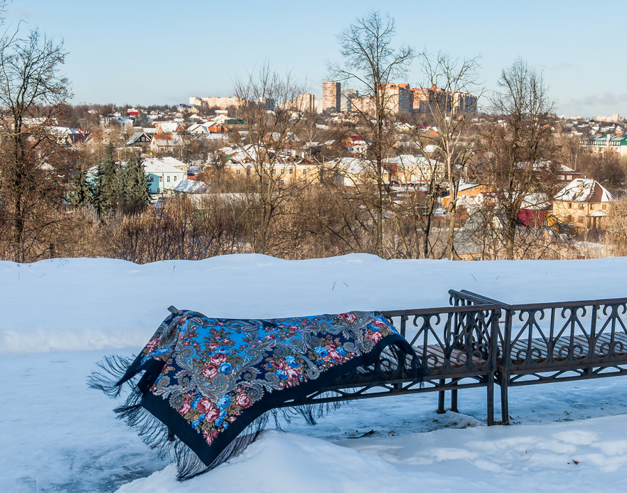 Не совсем скамейка - средневековые стены Кремля... и Нюанс-2. Купила, чтобы носить весной с бежево-белым.