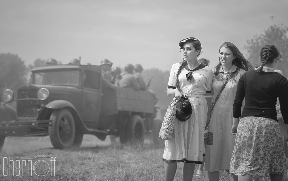 А еще оч. понравилось фото с тремя девушками и ретро-машиной на заднем плане из войнушки. Удачно построенный кадр.
