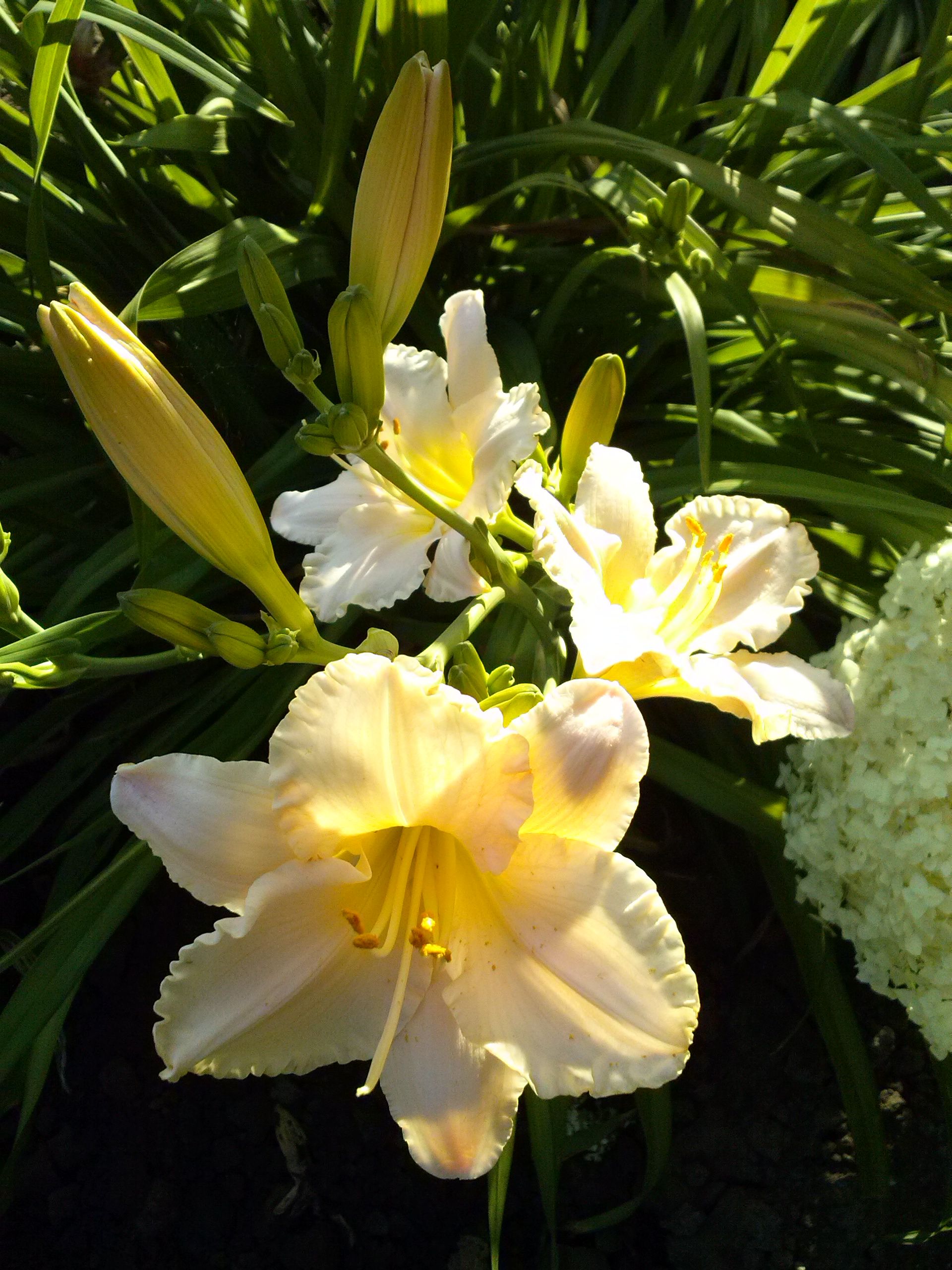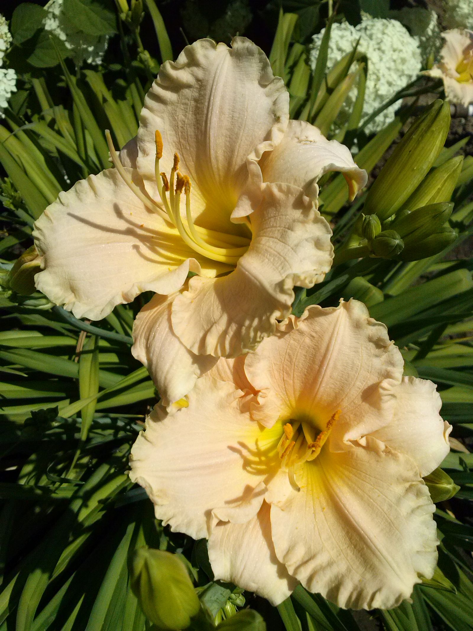 необыкновенно красивые лилейники! Особенно на первом фото - лепестки нежные, с "гофрированным" краем. А ещё очень понравилось ваше фото в Восточном путешествии на фоне гортензий. Очень идёт шаль, все цвета ваши, к цвету глаз и всему образу в целом Супер!
