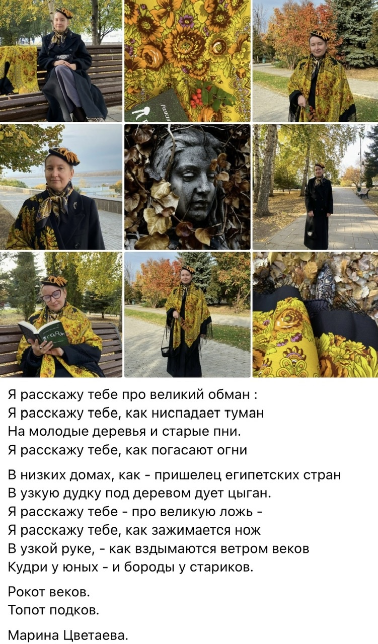 Атмосферный коллаж. Прекрасные фото. Елена, а Вы как Церевна осень. Очень вам идет и колорит, и рисунок этой чудесной шали