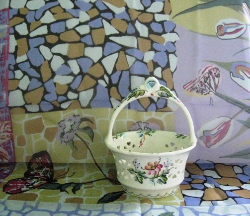 Решила добавить к коллекции семиракорской керамики на форуме фото своей конфетницы. Автор росписи Токаренко, исполнитель - Малышева. Снимок сделан на фоне пп платка "Южный берег" Шулаевой Милены.
