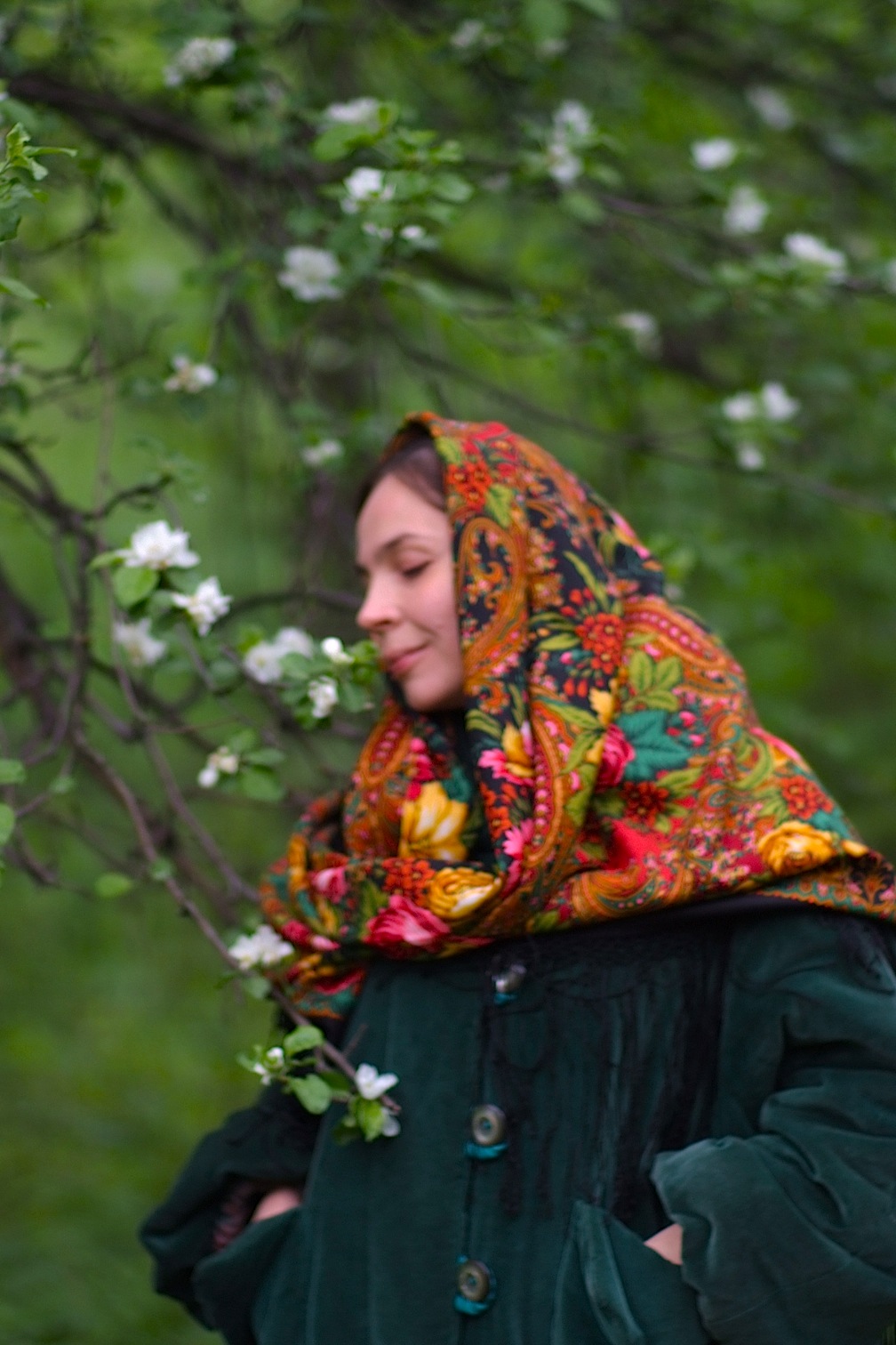 А мне сразу вспомнились картины художников 19 века. Добро, очень красиво! Восхитительно! Особенно в сочетании с пейзажем! Очень органично смотрится платок! Русскя красавица! Ждем ещё ваших работ, примеркой это не назовешь.
