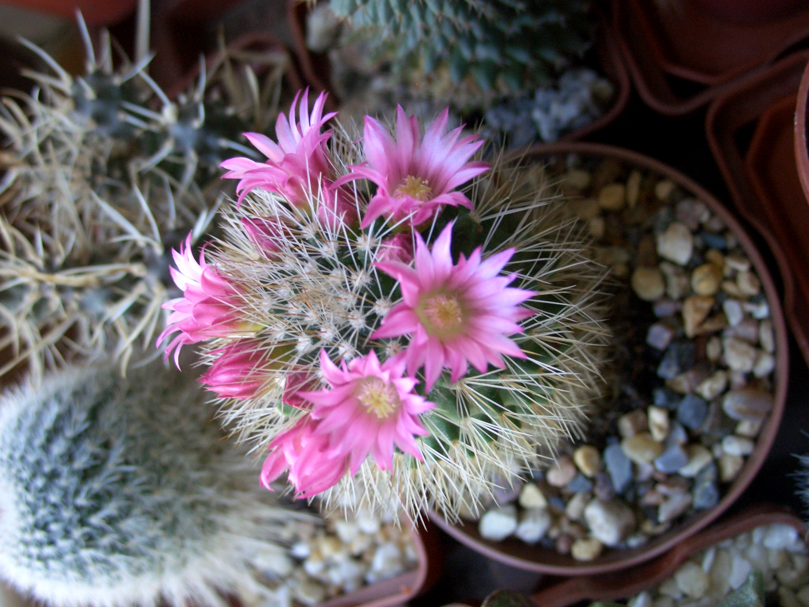 Элла, у меня один кактус, когда он цветёт столько радости...А у Вас целый цветник, красотища