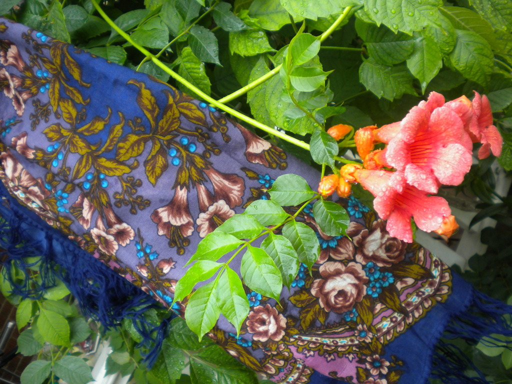 Шерстяной платок 89х89 и лиана, признаюсь не знаю названия, я просто называю "трубочки".